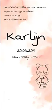 Op 20 juni is Eefke bevallen van een dochter Karlijn. De bevalling is gelukkig voorspoedig gegaan en nu is het genieten voor Eefke, haar man Pascal en grote zus Nienke.