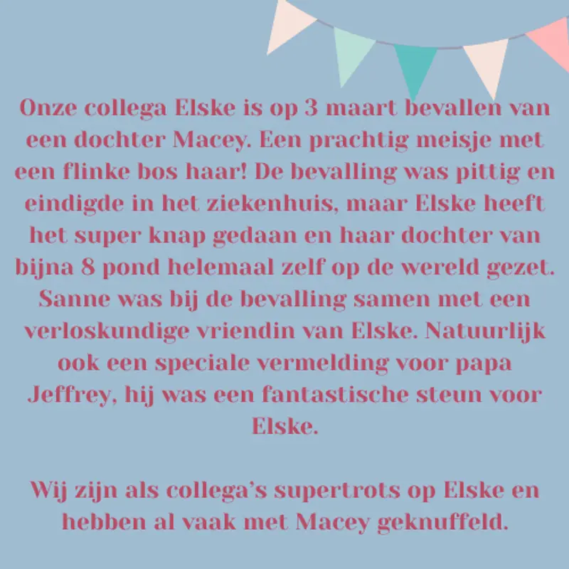 Elske bevallen van dochter Macey